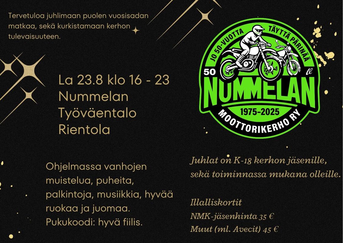 Nummelan Moottorikerhon 50-vuotisjuhlat - Ilmoittautuminen päättynyt!